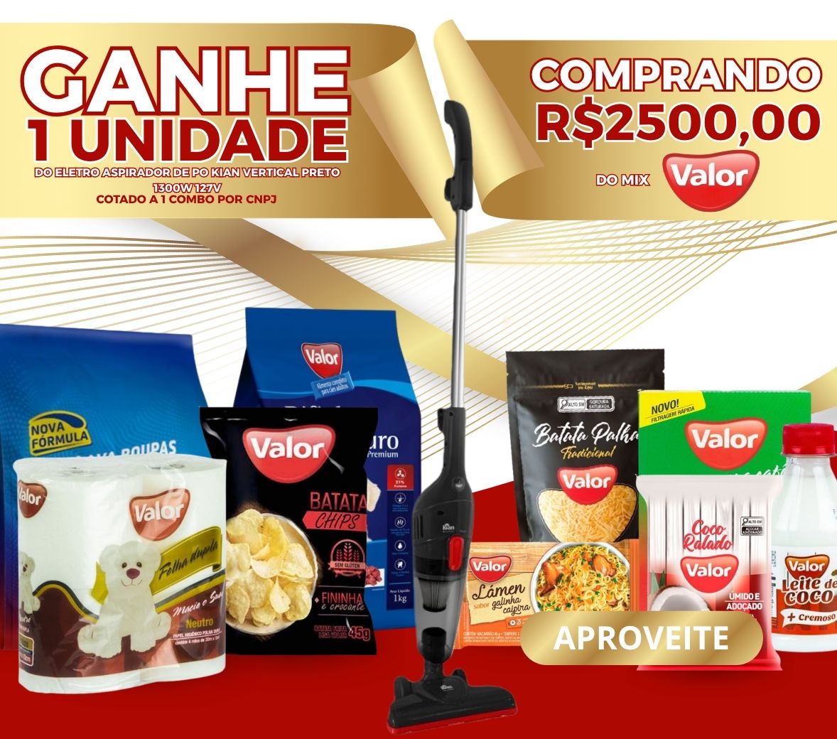 CLIENTE COMPRANDO R$2500 DE TODO O MIX VALOR IRÁ GANHAR DE BRINDE O ITEM 453369 - ELETRO ASPIRADOR DE PO KIAN VERTICAL PRETO 1300W 127V 1X1 – 1 COMBO POR CNPJ. OFERTA VÁLIDA BRASIL EXC BA/CE/PI/TO/MA! Aproveite!