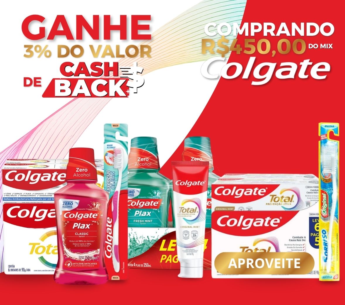 Ganhe 3% de CashBack, nas compras a partir R$450,00 do Mix colgate. Aproveite! Oferta válida Brasil!