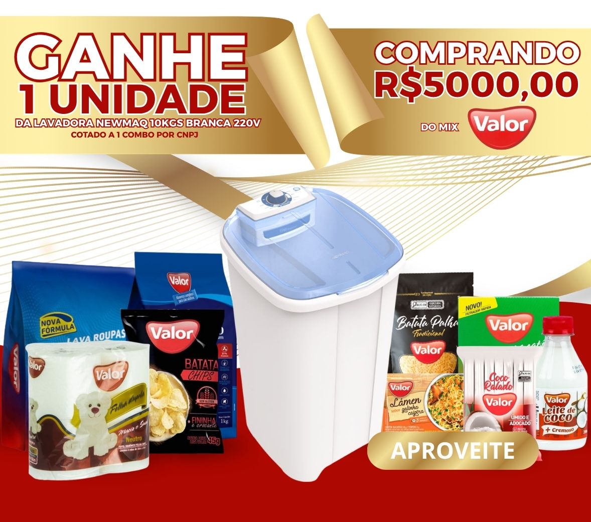 CLIENTE COMPRANDO R$5000 DE TODO O MIX VALOR IRÁ GANHAR DE BRINDE O ITEM 448268 - LAVADORA NEWMAQ 10KGS BRANCA 220V 1X1 – 1 COMBO POR CNPJ. OFERTA VÁLIDA SOMENTE PARA BA/CE/PI/TO/MA! Aproveite!