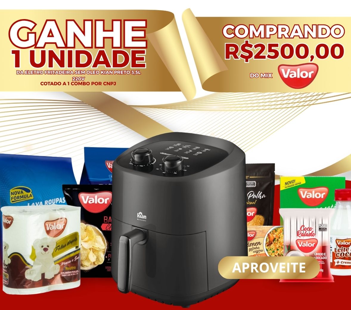 CLIENTE COMPRANDO R$2500 DE TODO O MIX VALOR IRÁ GANHAR DE BRINDE O ITEM 452178 - ELETRO FRITADEIRA SEM OLEO KIAN PRETO 3,5L 220V 1X1 – 1 COMBO POR CNPJ. OFERTA VÁLIDA SOMENTE PARA TO/MA!