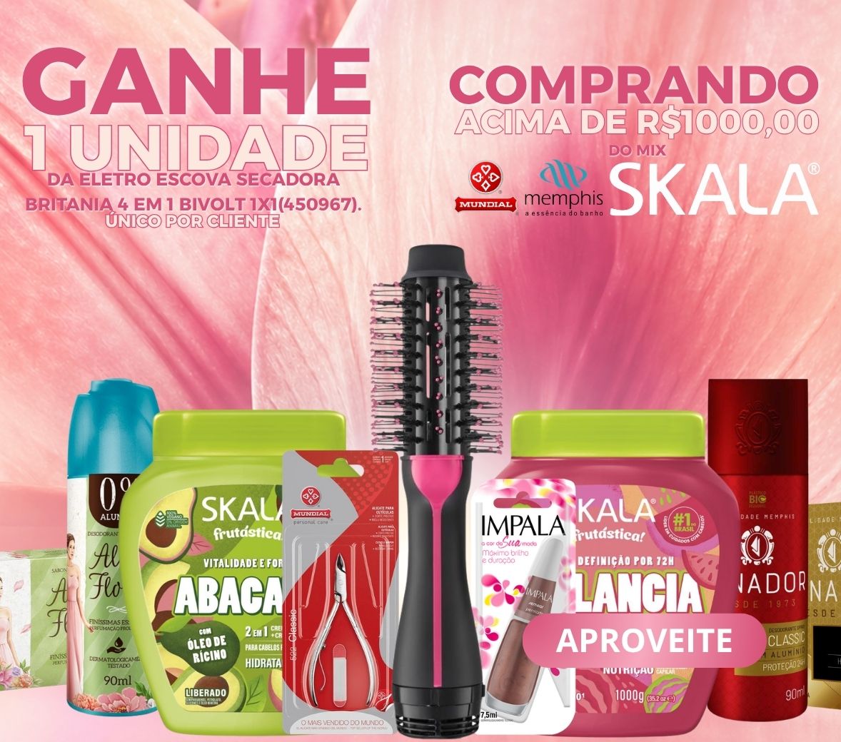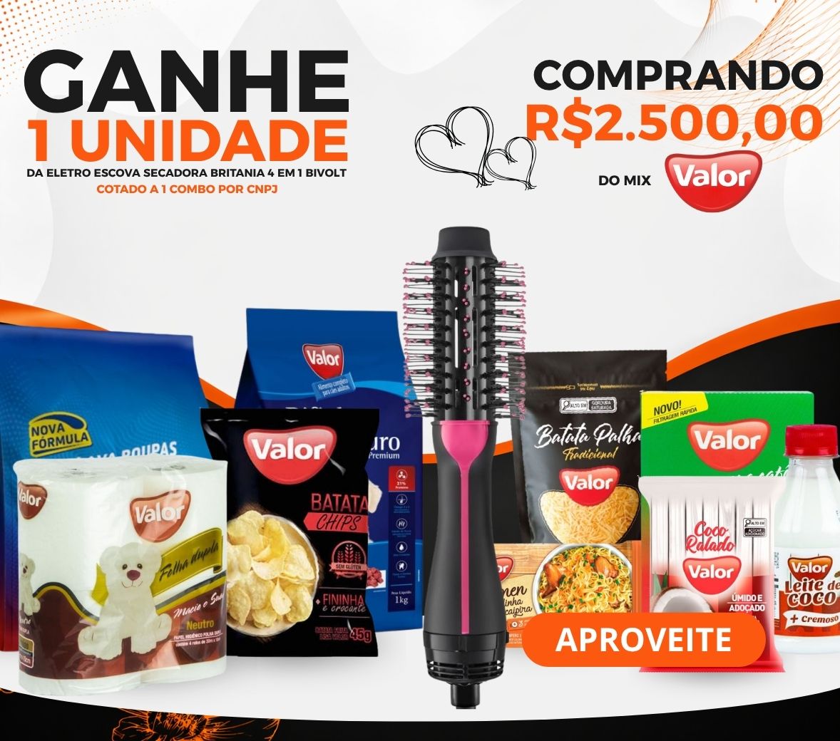 CLIENTE COMPRANDO R$2500 DE TODO O MIX VALOR IRÁ GANHAR DE BRINDE O ITEM 450967 - ELETRO ESCOVA SECADORA BRITANIA 4 EM 1 BIVOLT 1X1 – 1 COMBO POR CNPJ. OFERTA VÁLIDA SOMENTE PARA BA/CE/PI!
