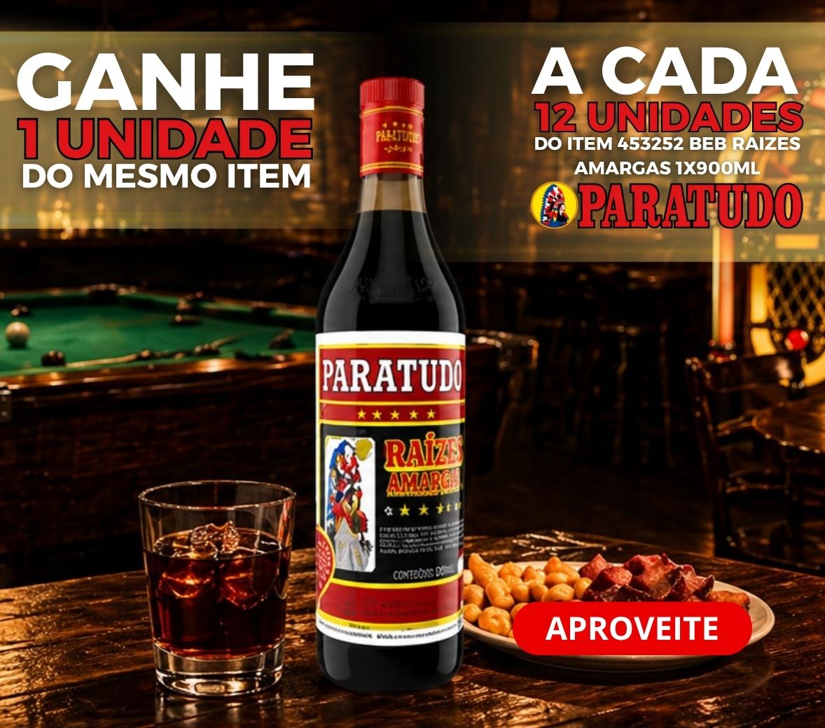 A CADA 12 UNIDADES DO ITEM 453252 BEB PARATUDO RAIZES AMARGAS 1X900ML O CLIENTE GANHA 1 UND DO MESMO ITEM! OFERTA VÁLIDA SOMENTE PARA SP / RJ / MG / ES! Aproveite!