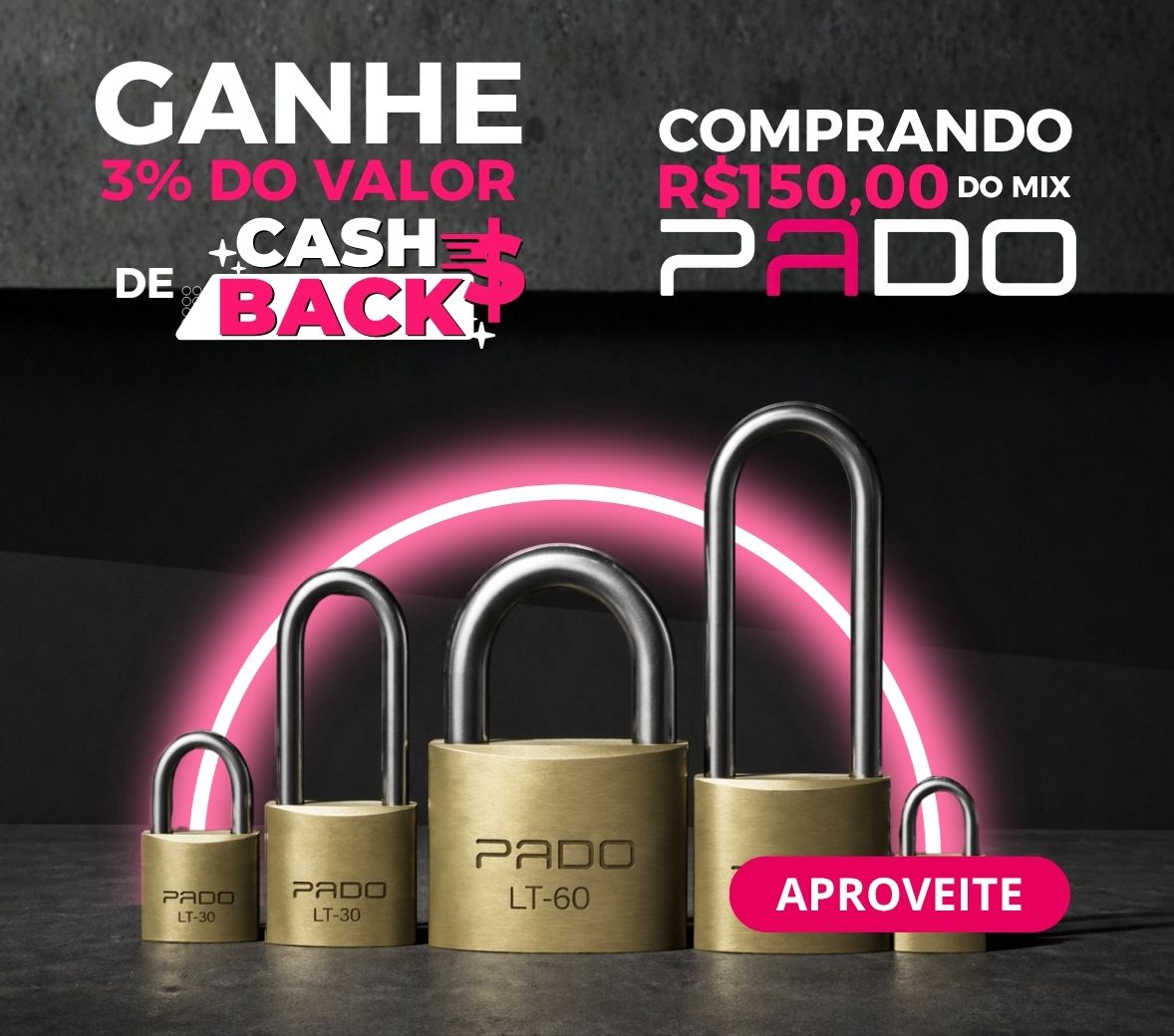 COMPRANDO NO MÍNIMO 3 ITENS CADEADOS, GANHA 5% EM TODA A LINHA PADO. Oferta válida Brasil EXC BA/CE/PI!