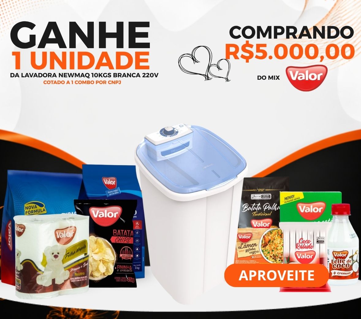 CLIENTE COMPRANDO R$5000 DE TODO O MIX VALOR IRÁ GANHAR DE BRINDE O ITEM 448268 - LAVADORA NEWMAQ 10KGS BRANCA 220V 1X1 – 1 COMBO POR CNPJ. OFERTA VÁLIDA SOMENTE PARA BA/CE/PI/TO/MA! Aproveite!