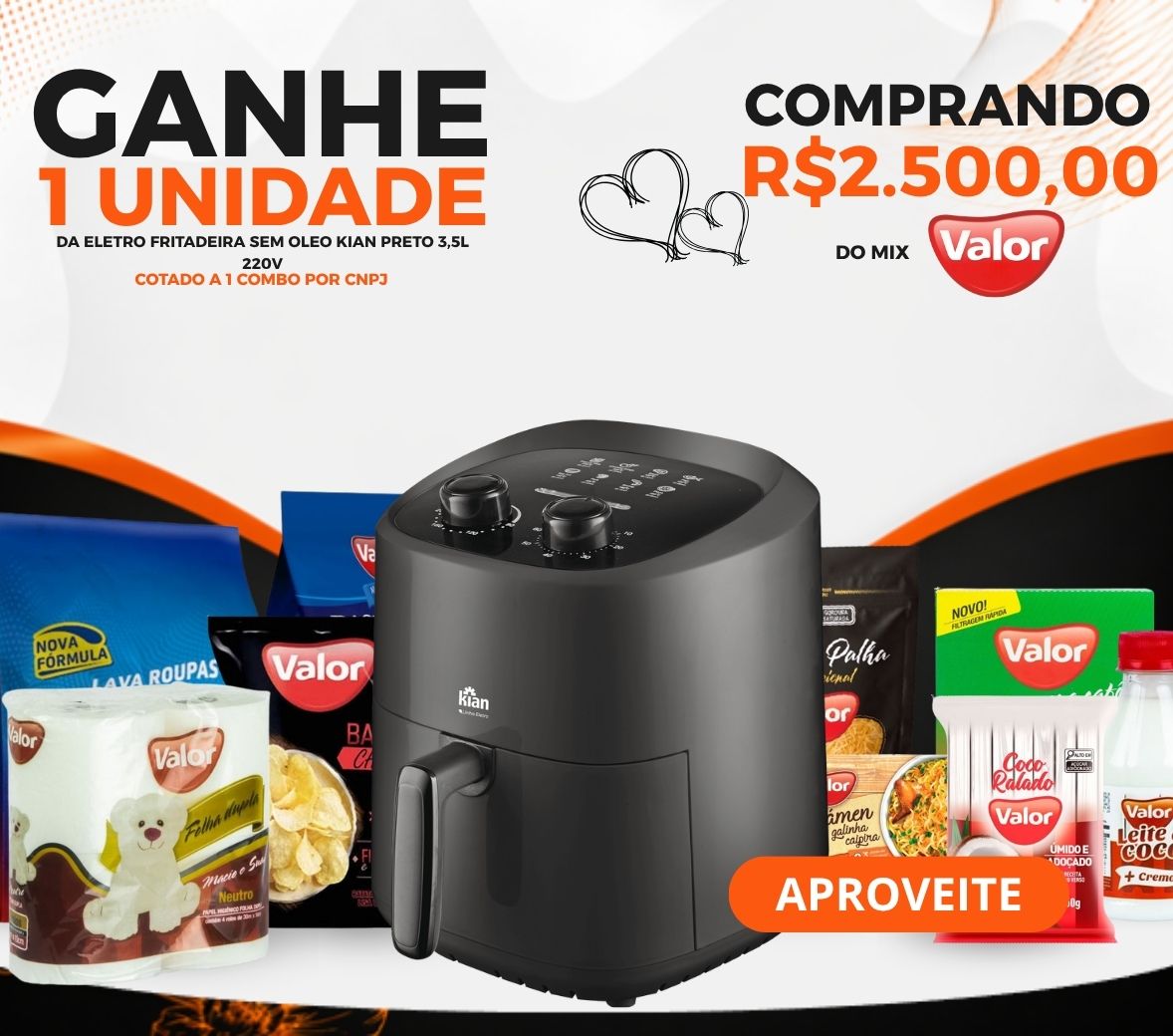 CLIENTE COMPRANDO R$2500 DE TODO O MIX VALOR IRÁ GANHAR DE BRINDE O ITEM 452178 - ELETRO FRITADEIRA SEM OLEO KIAN PRETO 3,5L 220V 1X1 – 1 COMBO POR CNPJ. OFERTA VÁLIDA SOMENTE PARA TO/MA!