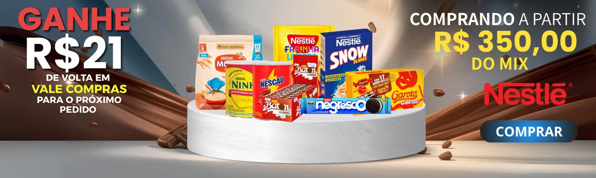 Ao comprar R$350,00 no MIX NESTLE , você recebe R$21,00 de volta do valor total como vale compras para o próximo pedido!