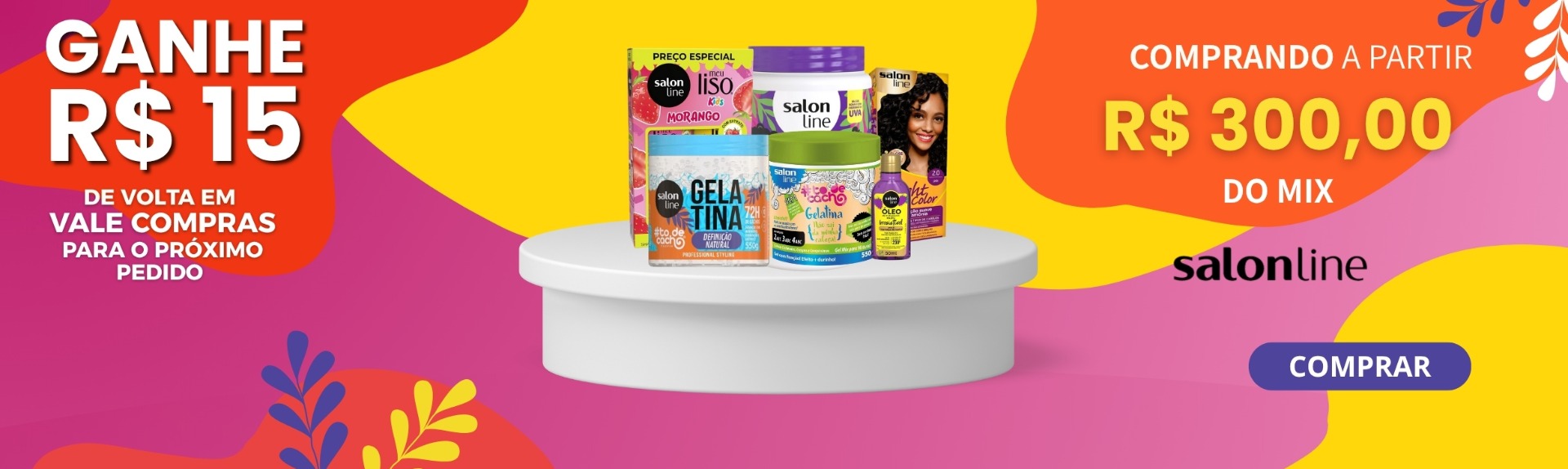 Ao comprar R$300,00 no MIX SALON LINE , você recebe R$15,00 de volta do valor total para o próximo pedido!